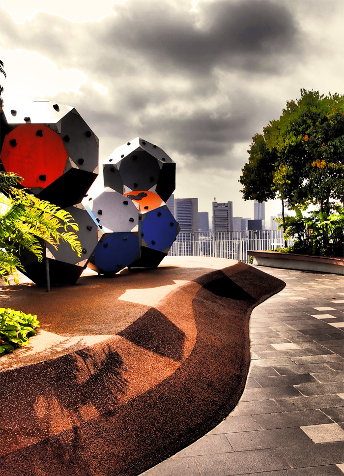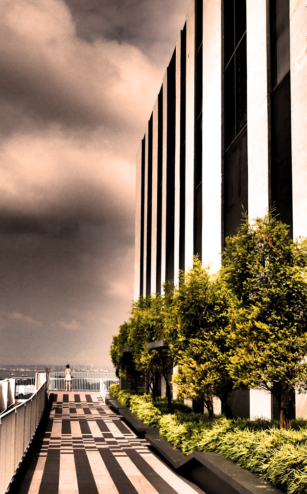 Singapore Maybe i’m a creep but I keep taking pictures of people sleeping here.. I just like this photo.. my girlfriend on top of one of the buildings.